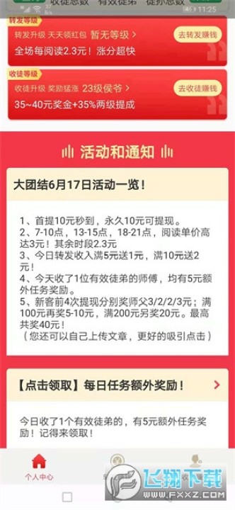 3、团结头条转发平台可谓人气十足,不玩套路,带给您前所未有的涨分体验,涨钱速度飞快,还有转发满就送、收徒大赛等活动
