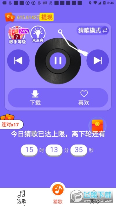 【猜歌亮点】歌曲自动播放,无需手动切换,开车时解放双手,无聊时猜歌,满足各个场合需求;