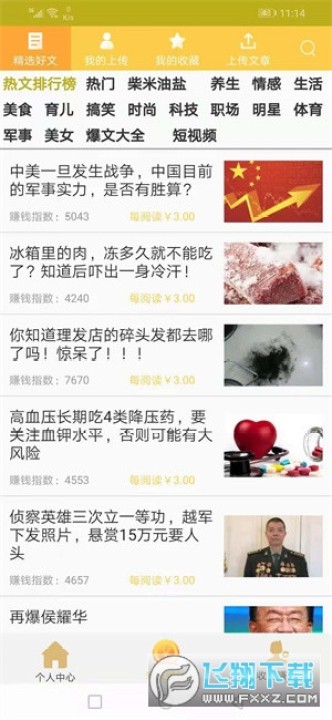 1、新用户下载注册六顺看点app就送1元,转发文章单价全天3元/阅读