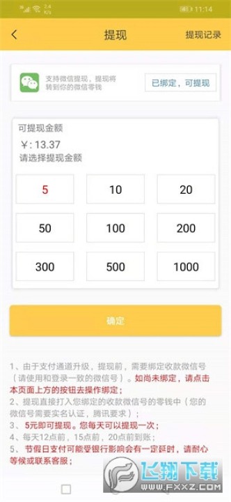 3、六顺看点首提5元秒到账,并且永久5元可提现,每人每天限提一次