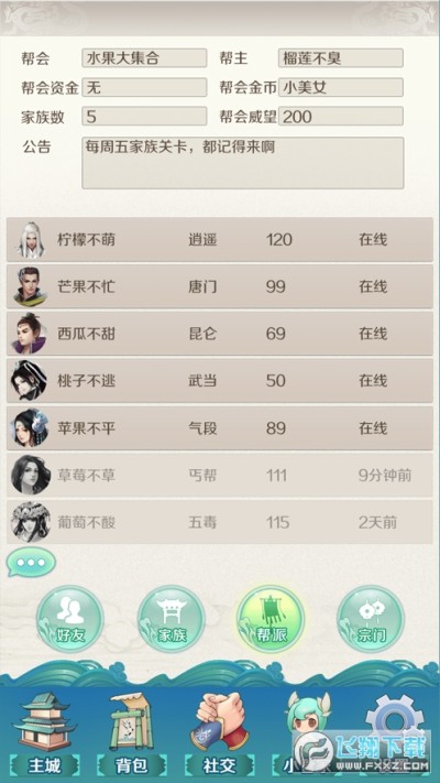 即时查看好友、家族、帮会、宗门信息,随时进行密聊。