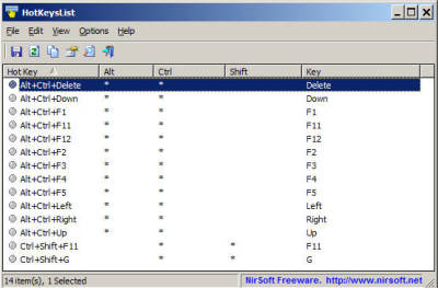 HotKeysList 同样也是 NirSoft 家出品的小工具之一,它们家的小工具还挺实用的。运行HotKeysList 后它会自动列出系统中所有已经注册了的全局快捷键,那么如果你需要自定义全局快捷键时,就可以对照着这里面的快捷键来合理避开了。比较可惜的是 HotKeysList 只有查看功能,没有修改功能。