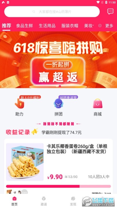 新用户注册享0元参团+现金返利!