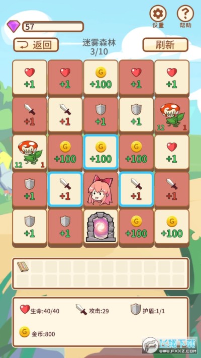 ◆在关卡地图上,您需要通过点击格子,进行移动。由于踩过的格子会消失,且格子上会有道具、金币或魔物,因此您需要规划合适的路线来减少损失和增加收益,以便应对越来越难的关卡。