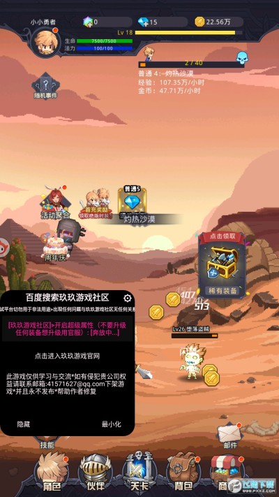 随机事件随机出现!只要轻轻一点事件即可提高战力、削弱魔物攻击、掉落大量金币和钻石!你更可以打开隐藏的各种玩法,体验属于你的神秘的快乐!