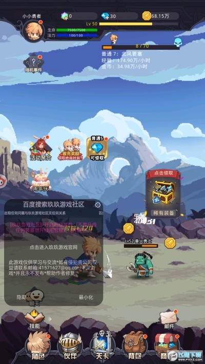 在童年时光,我们都热爱那些风靡大街小巷的经典像素游戏,也都有着成为勇者的梦想!在这里,你可以派出勇者,为了保护家园而义无反顾!在这里,你可以为童年的自己一圆勇者之梦!