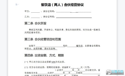 餐饮店(两人)合伙经营协议,现在不少人都想要创业,特别是餐饮行业,搭伙的朋友挺多,但是就是因为搭伙容易引起纠纷,所以必要的餐饮店(两人)合伙经营协议不可少,飞翔小编已经给大家准备好,有需要的朋友赶紧下载吧。