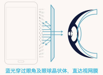 蓝光最靠近紫外线,是可见光中能量最强的光线,可以穿透晶状体到达视网膜,导致视网膜色素的上皮细胞衰亡。而上皮细胞的衰亡,会导致光敏感细胞缺少养分,从而引起视力损伤。