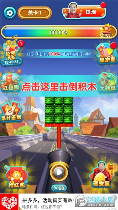 全民炮手赚钱版是一款射击玩法赚红包的手游,游戏的内置相当的丰富到位,玩基金清的在里面体验不一样的射击玩法,摧毁障碍物即可获得红包奖励,随时感受最为到位的射击畅玩,尽情的在里面玩耍吧!