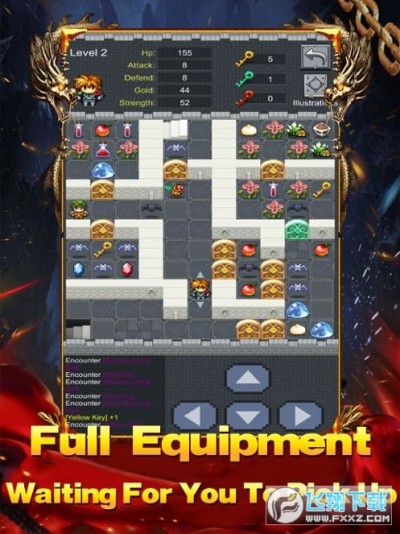 2,每层地图中有着怪物和钥匙。后期的楼层还有着武器,隐藏机关和NPC,可以提升属性。