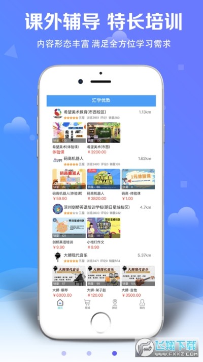 “汇学优教”是“互联网+实体教育”信息服务平台,研发团队为山东新希诺网络科技服务有限公司,汇学优教的宗旨是:让天下所有的父母用更少的经济付出,让孩子享受到更好的教育环境。为广大家长用户,提供更专业、更专注的一款针对于课外辅导教育及特长培训的软件