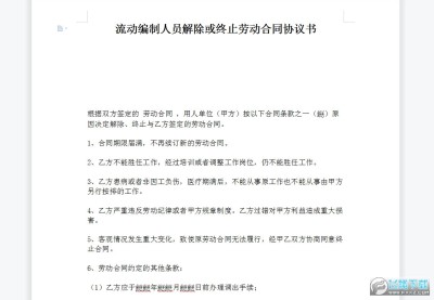 用人单位可能会经常招聘一些流动劳动者,现在是只要是参加了工作就会签署劳动协议,所以在劳动者被开除或者终止劳动合同的时候也要签署一份合同协议书,有需要的朋友可以下载看看。