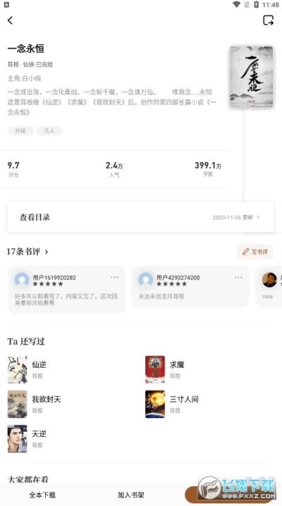 贴心一键免费缓存,小说实时不间断更新,没网也能追书。