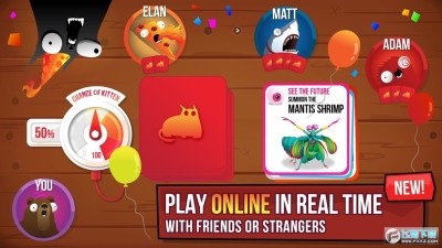 《爆炸小猫免付费版》是一款多人游戏的手机卡牌游戏。这款游戏十分讲究策略性,可以支持2-5位玩家共同游戏。核心玩法:抽到爆炸猫就会出局,没有拆弹卡的玩法无法解除爆炸就会出局。此版本为已经购买付费内容,还有头像包。感兴趣的赶紧下载体验吧!