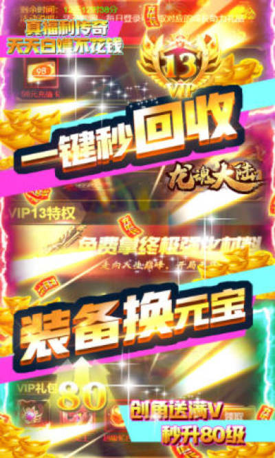 4、闯关必爆充值卡,满屏元宝轻松掉,变态加速高爆率,天天白嫖不花钱