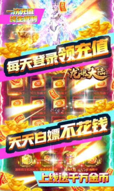 《龙魂大陆(送万元真充)》是一款挂机传奇游戏,以传奇1.76版本为基础,完整的再现了传奇打怪爆装掉宝,野外抢boss,热血PK,沙巴克攻城,以及行会战等玩法。最新万人即时攻城MMORPG巅峰力作,炫酷的魔法效果,爽快的成长体验,真正实现与宏大的游戏世界即时互动体验!画面绚丽,造型华美,丰富的职业种类,畅快PK体验,沙城齐聚,点燃征程!血战吧,兄弟,共铸热血传奇,重夺沙城之巅!