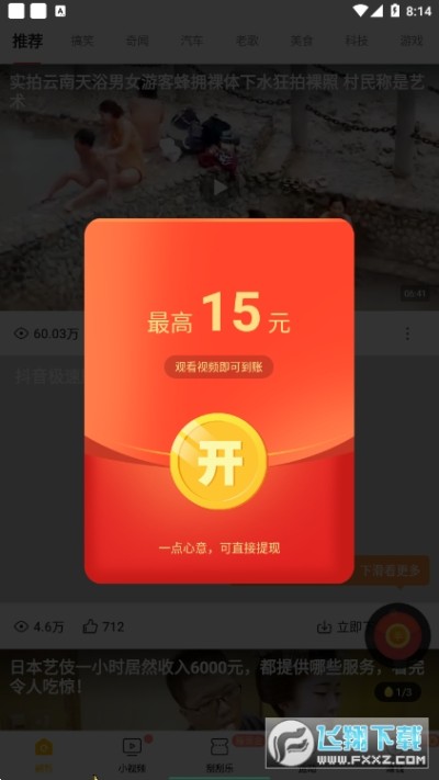 3、而且不光是有各种短视频,还会有红包可以拿。