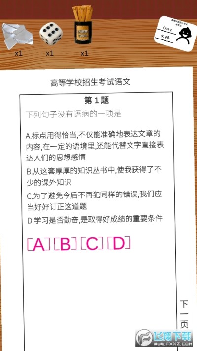 我的模拟高考去广告版是一款超级好玩的高考模拟器,玩家在游戏中可以体验一次高考的刺激,游戏中的题目有难有易,难的可能真的和高考差不多,简单的就像小学一样,感兴趣的小伙伴快来下载试试吧!