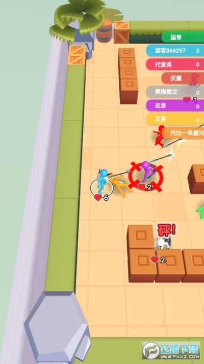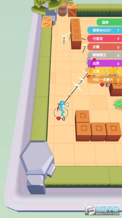 2、玩家中箭之后会掉一格血,血量消耗完之后就会被淘汰出局,如果击败一名对战,就可以增加一格血。