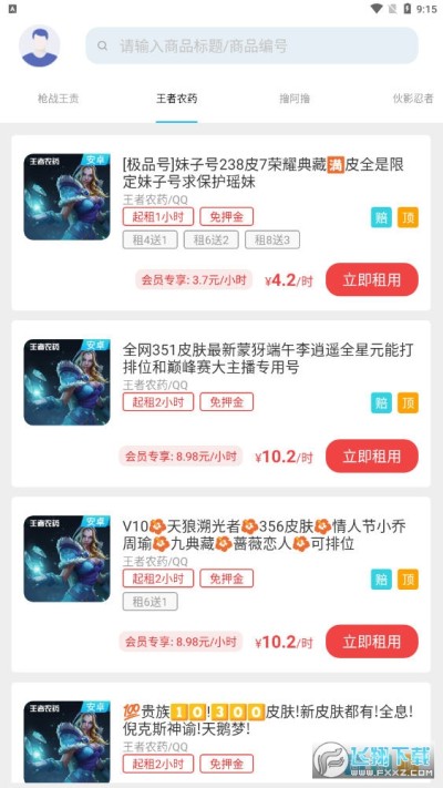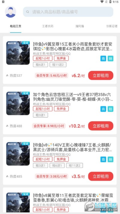 GG租号专业版app是一款针对手游跟端游的游戏账号租赁服务平台,这款软件支持目前市面上超多大火的手游跟端游,支持小时租、日租、周租、月租等等模式,还支持免押金租赁,超多大神号妹子号都在这里,快来试试吧!