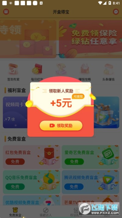 【兼职赚钱】猜歌、抽盲盒、签到打卡等多种方式能获取金币或红包,金币也能换成红包。红包可以兑换会员权益,每天多赚零花钱。
