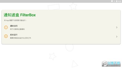 通知滤盒FilterBox是一款全功能通知管理器,简单白话来说就是根据你的意愿,过滤你所有软件的通知,最后你看到的推送都是过滤后的有效推送。第一次使用,需要开启本软件通知访问,以及同意后台运行、白名单。因为软件需要持续在后台运行才有效果。