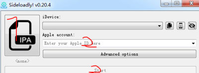 打开软件,吧IPA文件拖入软件左侧方框,在右侧输入apple id(如果不放心,可以注册个apple小号,百度教程一堆),然后点击start,等待软件显示100%Done就安装完成了,手机会有app图标
