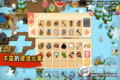 1、方块生存世界游戏采用沙盒玩法,各种资源任玩家去收集,采集矿石和木材,制作道具,建筑房屋等,尽情享受生存冒险的乐趣;