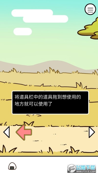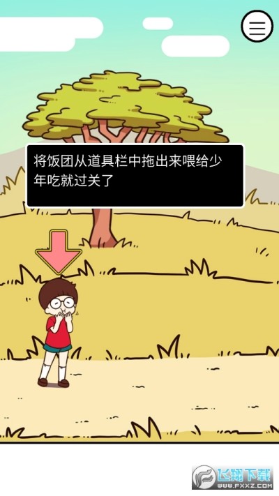 第一页,木棒打椰子,两个椰子,一个有红色的饭,一个有钱,用钱去第三页给投币机,换取吃的