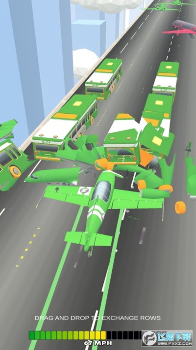 撞上相同颜色的飞机和汽车以粉碎它们。收集碎片并向上滑动以将它们扔向其他颜色平面。