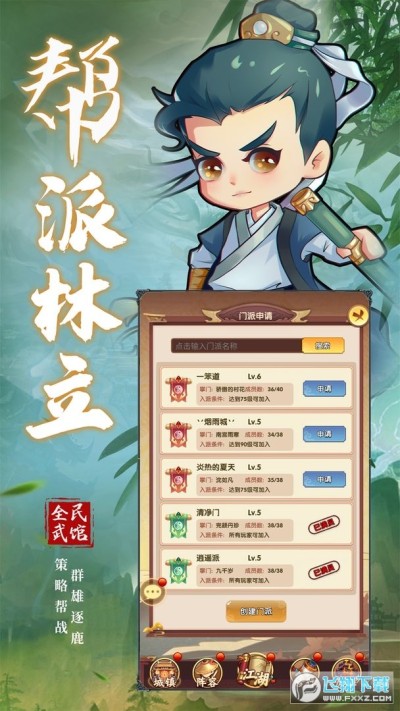 4、建立帮派,在这里面玩家还可实时的啦建立各种帮派,可很好的通过咱们的游戏来征战武侠的世界。