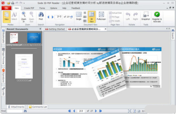 3D作为一种全新的视觉效果不仅仅能够利用在3D电影中,也没有想象中的那样神秘,其实在浏览最常用的文件的时候也能感受到3D的效果。立体效果pdf阅读器(Soda PDF 3D Reader)可以将PDF阅读体验到翻书的真实立体效果的阅读器,打造全新视界!下载后解压安装,安装过程需要下载,然后免费注册即可使用。