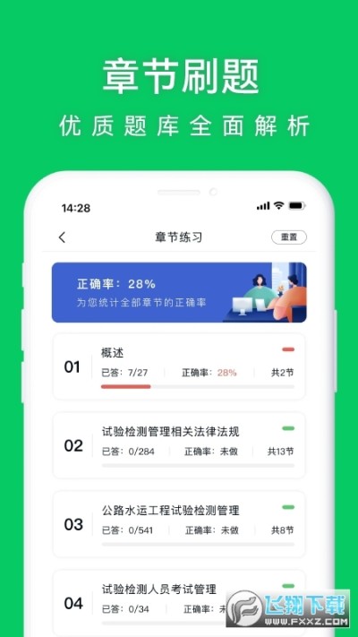 (2)题目数据丰富每个考试下的科目章节全都有,让你每一个章节都有题做;