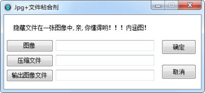 点击图像就可以选择你准备好的图片,点击压缩文件选择压缩包,点击输出图像文件就会让你设置加工好的文件名字和位置,准备完之后点击确定就会开始把你的图片和压缩包结合,结合之后就会生成一个压缩包大小的图片,如果需要使用,需要把这个图片的JPG后缀修改为ZIP。