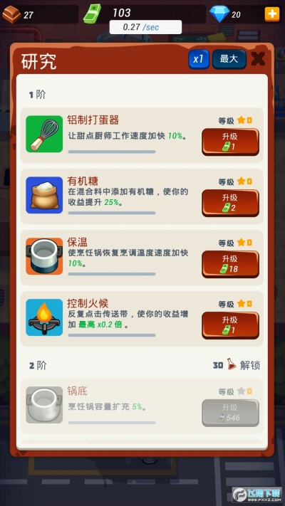 良好的经营策略和产品对于建立烘培坊帝国来说,缺一不可。因此,请勿忘投资研发工作。科学研究部随时能够为烹饪界此入激动人心的新颖技术。为他们的疯狂研究提供资金,充分发挥他们的知道改造你的烘培坊。