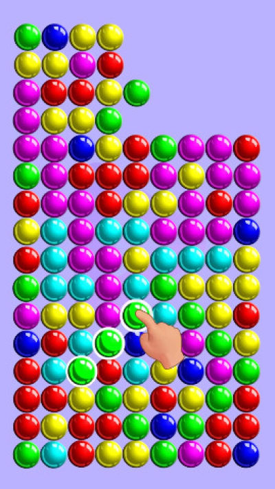 (1)点击屏幕发射泡泡,将三个以上同色泡泡连在一起,泡泡消去。