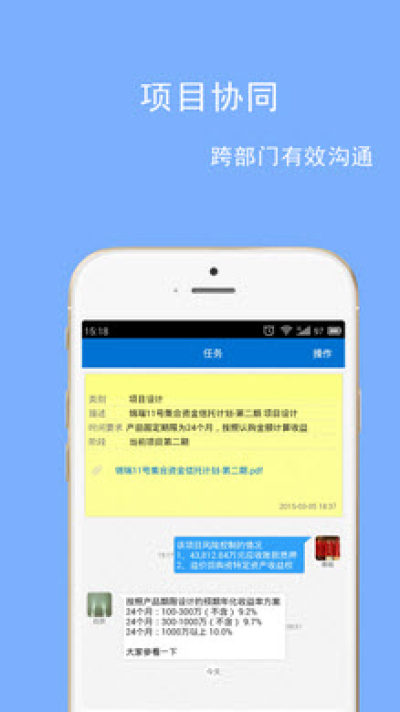 3.商谈提供灵活化的多团队沟通方式,支持图片、声音、地理位置功能、文件传输等多种形式,并可以设置各种自定义事情模板。