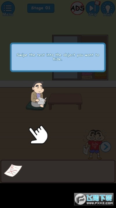 《隐藏我的测试免广告版》是一款闯关玩法的休闲游戏。藏起你的试卷!0分试卷可是会被妈妈打的哦!你要保证试卷不被发现才会不刺激妈妈生气!想不出办法藏起来也可以,毕竟此版本已经修改了免广告直接跳当前关卡,感兴趣的赶紧下载体验吧!