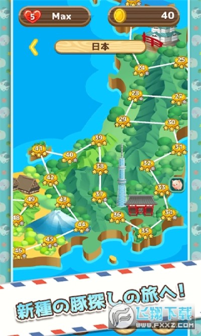 在关卡中移动猪猪并将3隻同种类的猪连在一起即可消除,更有可能开始连锁消除!