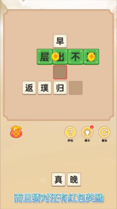 《趣猜成语》是一款新推出的成语闯关游戏。趣味猜成语游戏拥有超多的关卡内容设定,难度会不断的进行增加,通过闯关去解锁更多的红包奖励,达到一定的数额之后就可以进行真实的提现游玩,趣味猜成语红包版趣味的成语内容还可以帮助我们的玩家增加知识面。