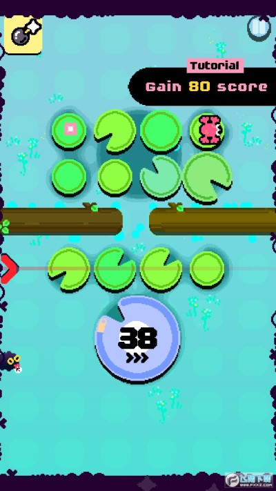 一条弯弯的河,一只可爱的小青蛙,面对这种挑战,你将如何处理,帮助青蛙完成战斗吧!