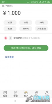 2、登录成功后,点击“视频”或者“文章”频道转发任意文章或者视频到微信,被阅读后就有现金奖励
