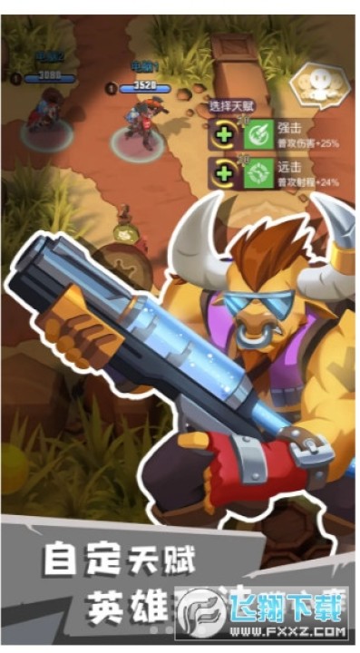 画风很不错,移动、射击的流畅度都很满意。游戏内容稍微有点单一。即使是从一开始的警长,到赏金猎人,到后两个角色狙击手和机器人都没有带来什么新鲜感,完全没有搜集英雄的欲望。可能因为在测试所以地图也只有一张,可以作为小游戏休闲来一局很不错。玩了大约四五把之后赏金猎人上了十级就没意思了。加油!