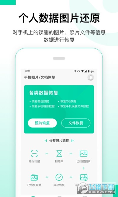 2、支持恢复各种手机数据,包括照片、图片、文档、音视频、短信、联系人等等;