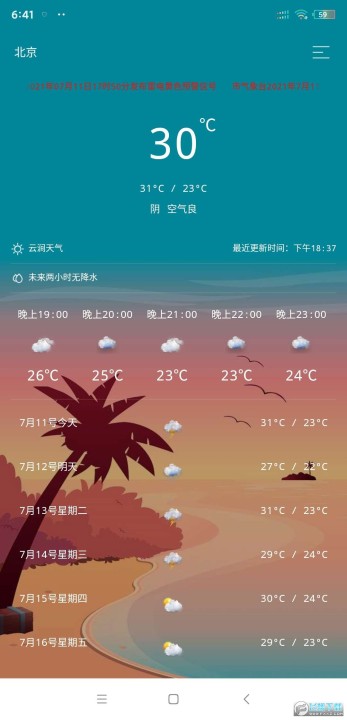 云涧天气是一款非常不错的天气查询软件,实时为您提供每天的情况以及未来15天的天气情况,如果当天下雨,还会提醒别忘记带伞,非常方便,还有大量的精美壁纸,一键即可轻松切换,还等什么,快来下载吧!!