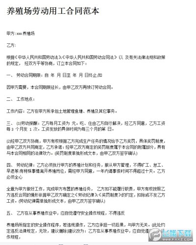 养殖场劳动用工合同范本:养殖场用工协议书怎么写?养殖场劳动合同详细范本在哪里看?今天小编就为大家带来养殖场劳动用工合同内容,详情写清了养殖场工作内容、地点、劳动时长等,感兴趣的话不妨点击下载尝试吧!