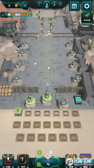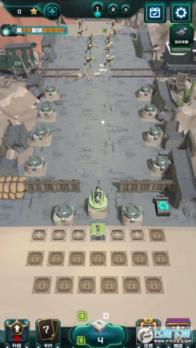 1、末日丧尸游戏中有多种武器,每种武器的攻击范围不经相同,自动合成高级武器功能将合成的高级武器放在合适的位置发挥更好的效果!