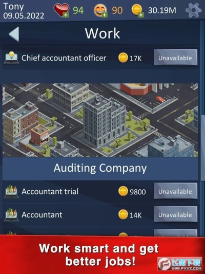 2、很真实的游戏画面,故事背景是大学毕业,学习新事物,让个人成长,赚取更多的人民币。