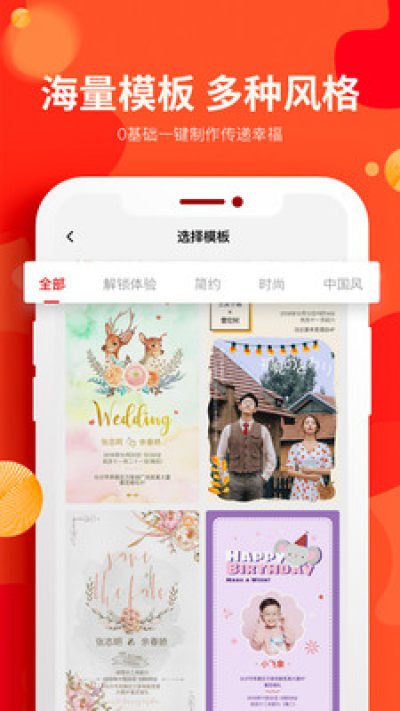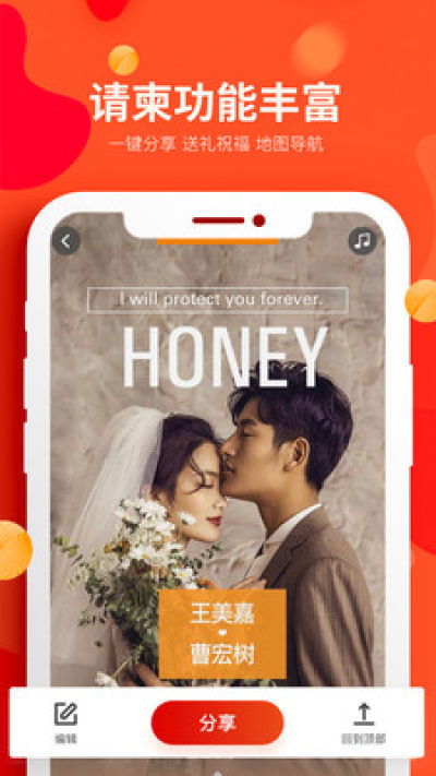 用它轻松制作您的专属电子请柬、电子邀请函,结婚请柬请帖,支持一键分享秀出幸福时刻获好友祝福。