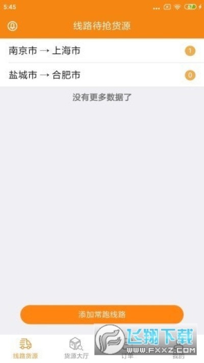 2、查看信息。点击【线路货源】或【货源大厅】菜单,查找货源信息。